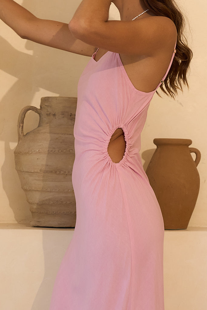 A modern classic with a twist. The Eliza Maxi Dress is designed to flatter from every angle, featuring a soft drape, bias cut, and delicate side gathering that hugs in just the right places. The standout detail? A subtle cut-out at the waist with ruched finish — adding a touch of allure to this elegant silhouette. Lovingly handmade by our artisans in Bali using breathable natural fabric.