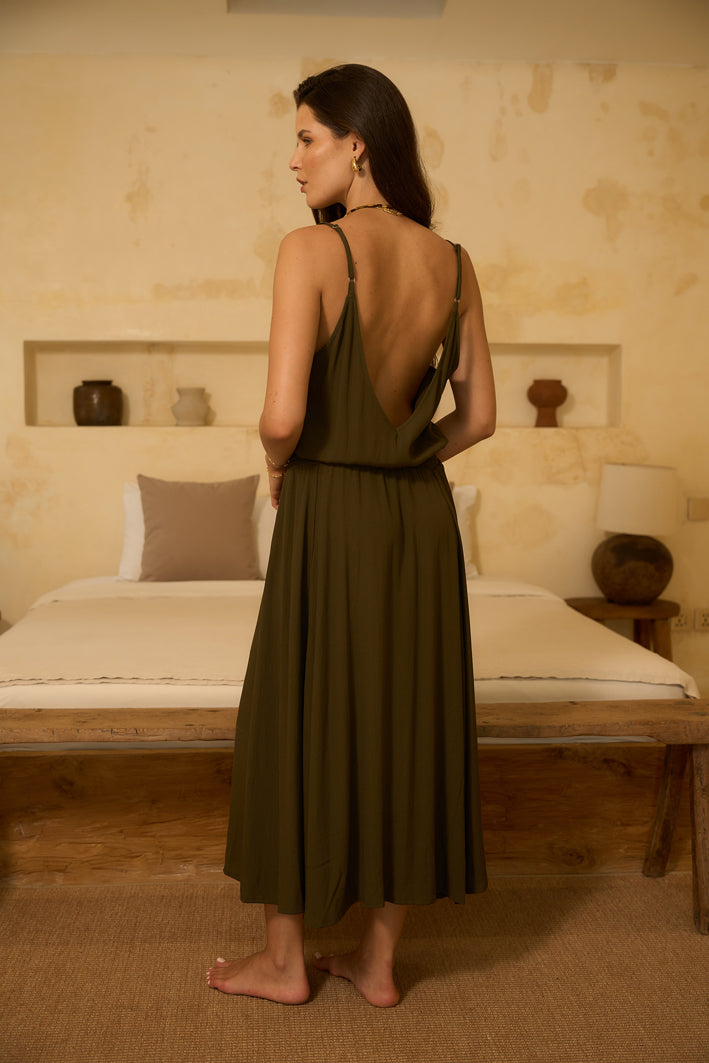 The Sophia Midi Dress in Chocolate is understated elegance in its purest form. Crafted from luxurious Fujet Viscose, it drapes beautifully on the body with a soft, fluid silhouette. The delicate spaghetti straps and flattering V-neckline add a touch of femininity, while the elasticated waist ensures both comfort and shape. The flowing midi-length skirt moves effortlessly, making it perfect for both casual days and elegant evenings.