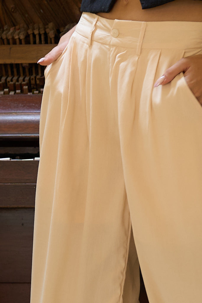 Relaxed yet refined, the Vittoria Long Pants in vanilla bring fluid movement and subtle elegance to your everyday wardrobe. Designed with a wide-leg fit and pleated details, these pants offer lightness and versatility, perfect for slow days and soft evenings.